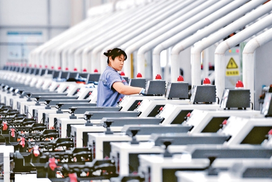 產(chǎn)業(yè)結(jié)構(gòu)調(diào)整優(yōu)化。農(nóng)業(yè)生產(chǎn)總體平穩(wěn),糧食產(chǎn)量連續(xù)9年穩(wěn)定在1.3萬(wàn)億斤以上,肉蛋奶、蔬菜水果等“菜籃子”產(chǎn)品供應(yīng)充足。制造業(yè)量增質(zhì)升,規(guī)模占全球比重由22.5%提升至30%左右,已連續(xù)14年居世界首位。高技術(shù)制造業(yè)占規(guī)模以上工業(yè)增加值比重由9.4%提升至15.7%。今年前7個(gè)月,新能源汽車、發(fā)電機(jī)組、智能手機(jī)、工業(yè)機(jī)器人產(chǎn)量分別增長(zhǎng)32.9%、19.8%、10.6%、7.9%。服務(wù)業(yè)保持穩(wěn)定發(fā)展,服務(wù)業(yè)增加值占國(guó)內(nèi)生產(chǎn)總值比重由45.5%上升到54.6%,生產(chǎn)性服務(wù)業(yè)增長(zhǎng)較快,服務(wù)消費(fèi)潛能持續(xù)釋放。