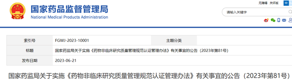 6月21日,《藥物非臨床研究質量管理規(guī)范認證管理辦法》于7月1日起施行,為做好新《辦法》實施有關工作的過渡和銜接,為做好新《辦法》實施有關工作的過渡和銜接,國家藥品監(jiān)督管理局發(fā)布實施有關事宜。