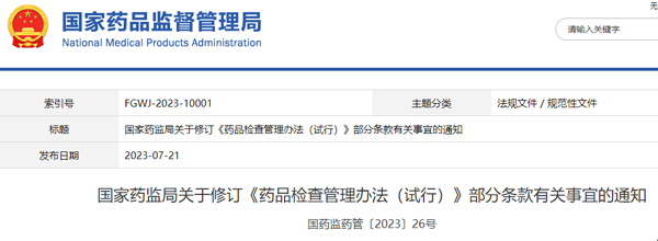 7月21日,國家藥監(jiān)局發(fā)布《關于修訂《藥品檢查管理辦法(試行)》部分條款有關事宜的通知》。此次修訂主要修改完善了第三章《檢查程序》和第九章《檢查結果的處理》等有關條款。