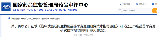 8月28日,為進(jìn)一步保障公眾用藥安全、有效,完善和規(guī)范生物制品臨床試驗期間變更和疫苗上市后藥學(xué)變更的研究,國家藥監(jiān)局藥品審評中心對《臨床試驗期間生物制品藥學(xué)變更和研究技術(shù)指導(dǎo)原則》和《已上市疫苗藥學(xué)變更研究技術(shù)指導(dǎo)原則》(原公開征求意見時名稱為《疫苗上市后生產(chǎn)工藝變更研究技術(shù)指導(dǎo)原則》)進(jìn)行第二次上網(wǎng)公開征求意見。