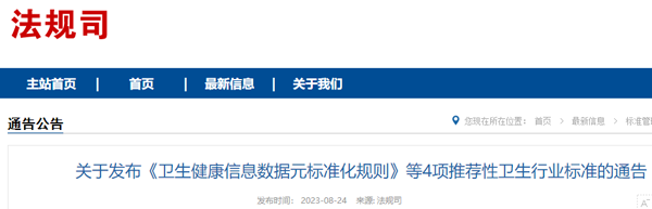8月24日,國家衛(wèi)健委發(fā)布4項推薦性衛(wèi)生行業(yè)標(biāo)準(zhǔn):衛(wèi)生健康信息數(shù)據(jù)元標(biāo)準(zhǔn)化規(guī)則、衛(wèi)生健康信息數(shù)據(jù)模式描述指南、衛(wèi)生健康信息數(shù)據(jù)集元數(shù)據(jù)標(biāo)準(zhǔn)、衛(wèi)生健康信息數(shù)據(jù)集分類與編碼規(guī)則。上述標(biāo)準(zhǔn)自2024年2月1日起施行,WS/T303—2009、WS/T304—2009、WS/T305—2009、WS/T306—2009同時廢止。