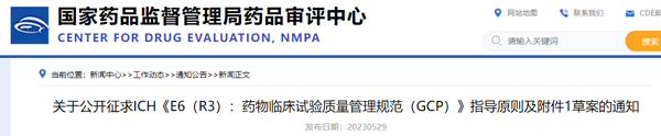 5月24日,國(guó)家藥監(jiān)局藥品審評(píng)中心發(fā)布《關(guān)于公開征求ICH《E6(R3):藥物臨床試驗(yàn)質(zhì)量管理規(guī)范(GCP)》指導(dǎo)原則及附件1草案的通知》,就該指導(dǎo)原則內(nèi)容及中文譯文向社會(huì)公開征求意見。