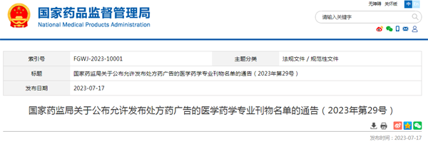 7月17日,國家藥監(jiān)局發(fā)布《關(guān)于公布允許發(fā)布處方藥廣告的醫(yī)學(xué)藥學(xué)專業(yè)刊物名單的通告》,新增《中國臨床新醫(yī)學(xué)》雜志。