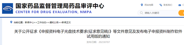 7月7日,為保障電子申報(bào)工作的順利推進(jìn),提高電子申報(bào)質(zhì)量,國家藥監(jiān)局藥品審評中心發(fā)布《申報(bào)資料電子光盤技術(shù)要求》和《藥品注冊申請電子申報(bào)目錄》,公開征求意見。