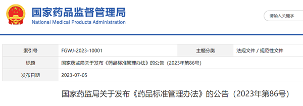 7月5日,國家藥監(jiān)局發(fā)布《藥品標(biāo)準(zhǔn)管理辦法》,進(jìn)一步規(guī)范和加強(qiáng)藥品標(biāo)準(zhǔn)管理,保障藥品安全、有效和質(zhì)量可控。