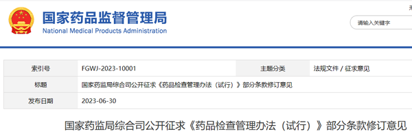 6月30日,為貫徹落實《藥品管理法》《藥品生產(chǎn)監(jiān)督管理辦法》,進(jìn)一步規(guī)范藥品檢查行為,國家藥監(jiān)局組織對《藥品檢查管理辦法(試行)》部分條款進(jìn)行修訂,公開征求修訂意見。