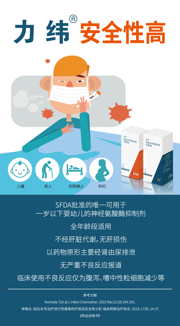 神經(jīng)氨酸酶抑制劑帕拉米韋氯化鈉注射液(力緯),為諸多指南、專家共識推薦的抗流感病毒治療用藥。同時,其還被美國食品藥品管理局(Food and Drug Administration,F(xiàn)DA)歸為妊娠期C類藥物。